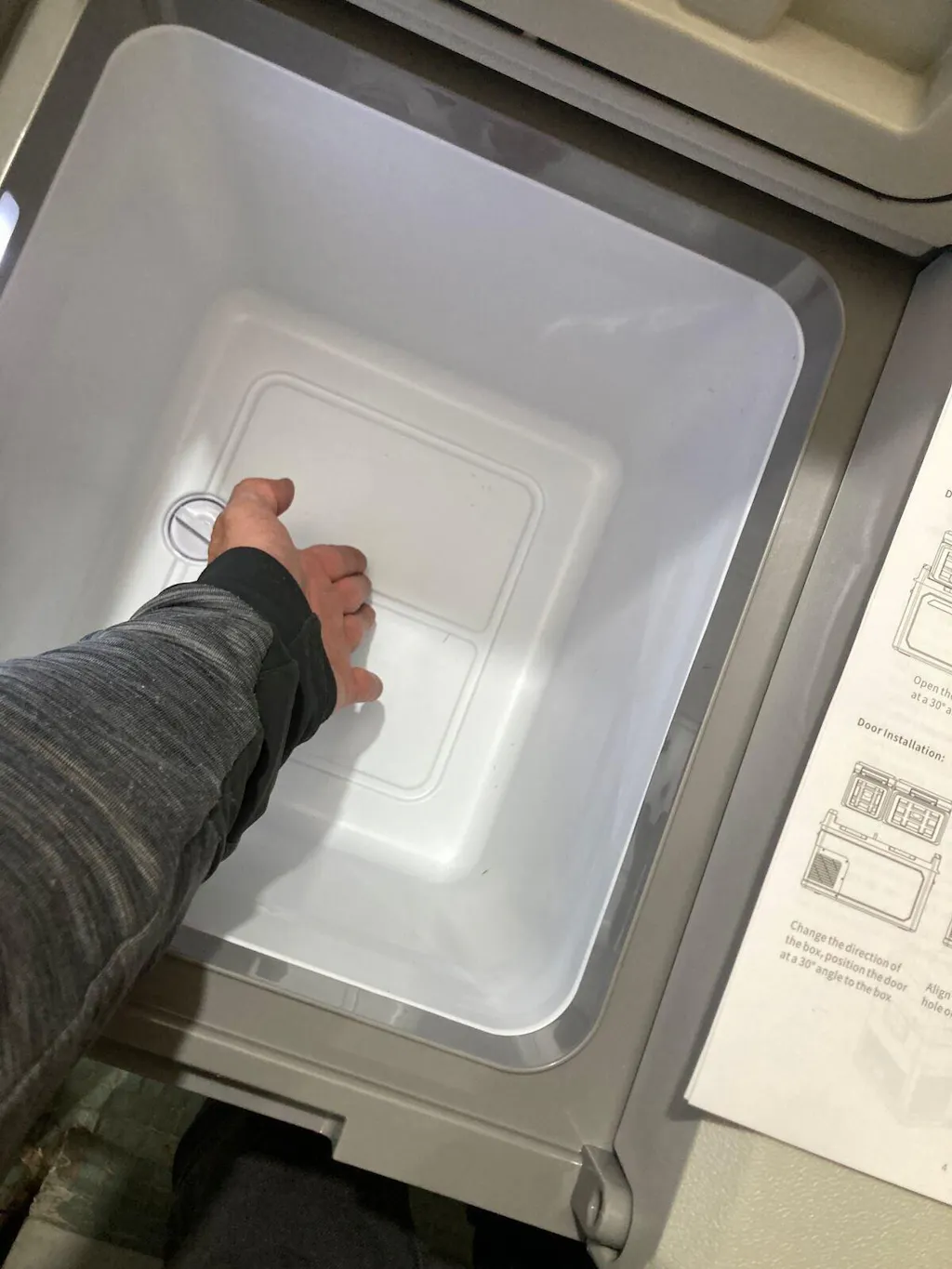 Quiet below 45dB, it includes an LED display, interior light, cup holders, drain plug and bottle opener, ideal for cars, RVs, boats, camping and home use.