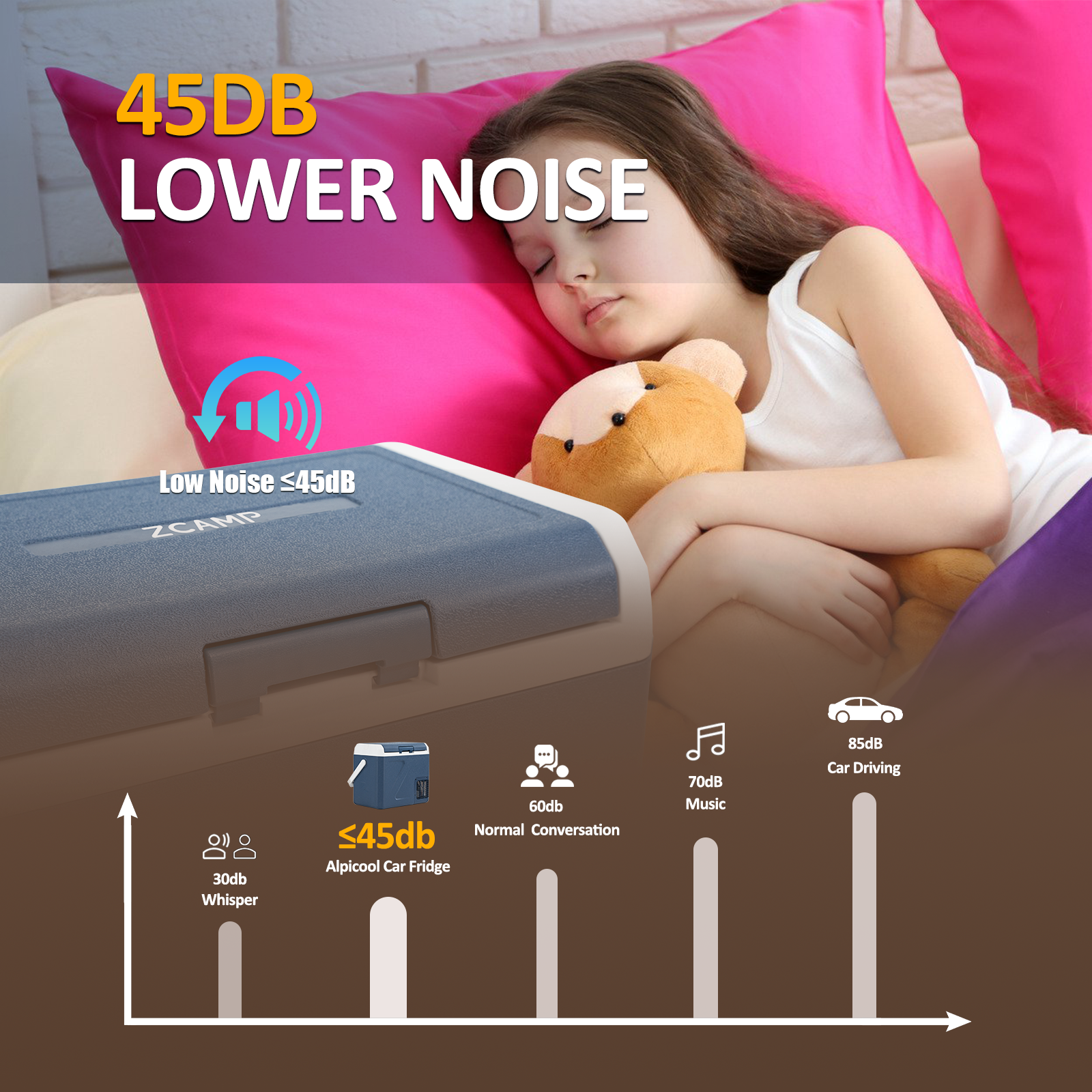 When you use the refrigerator in your car and plug it into a 12V socket, the noise is almost imperceptible!