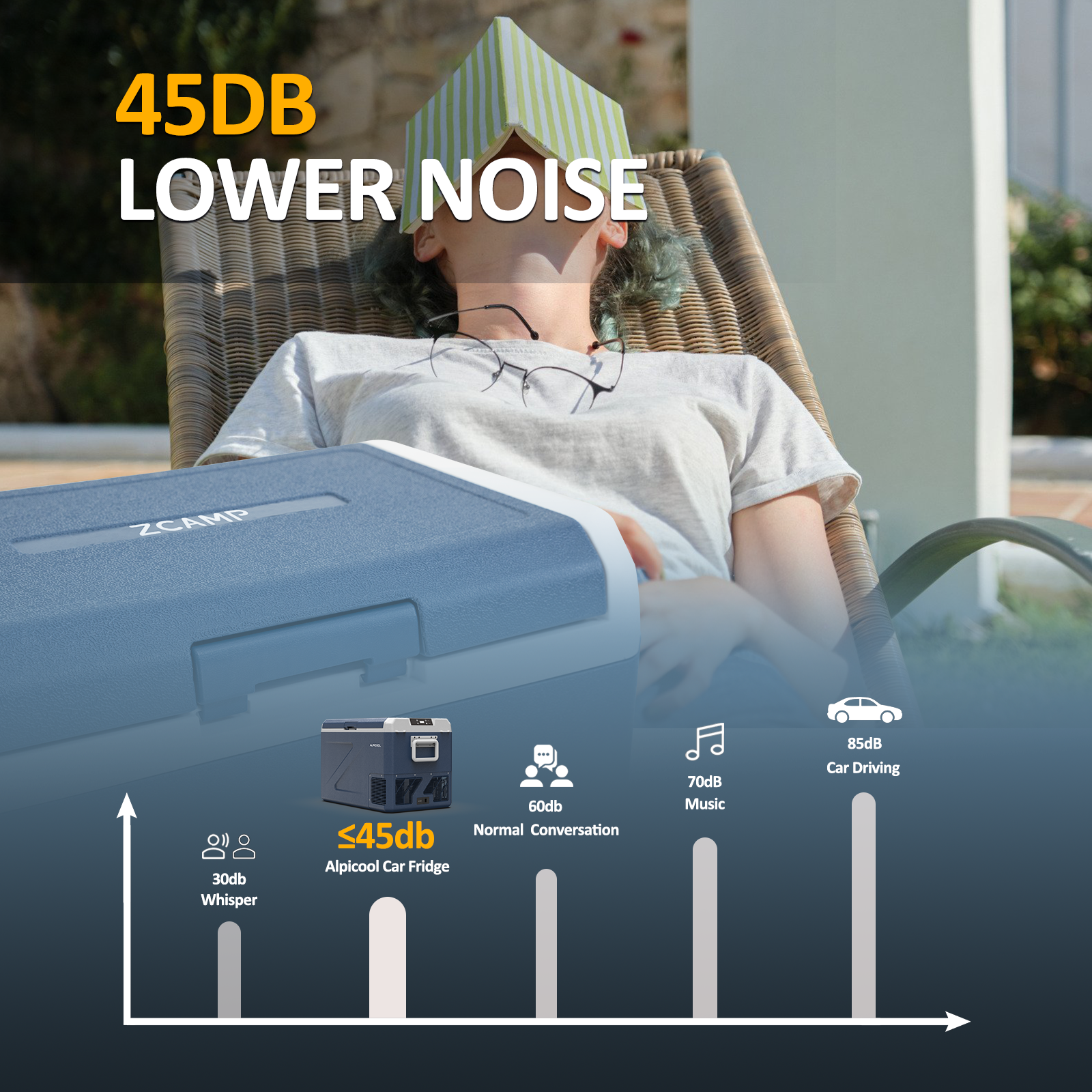 When you use the refrigerator in your car and plug it into a 12V socket, the noise is almost imperceptible!