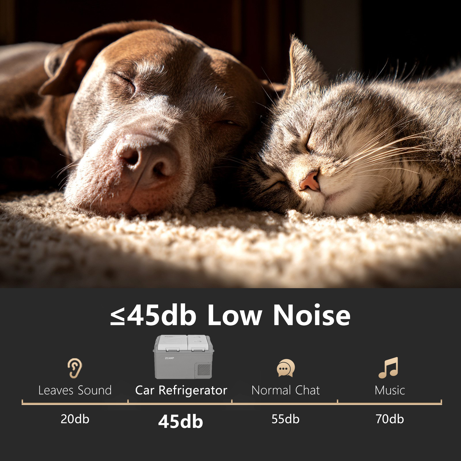 When you use the refrigerator in your car and plug it into a 12V socket, the noise is almost imperceptible!