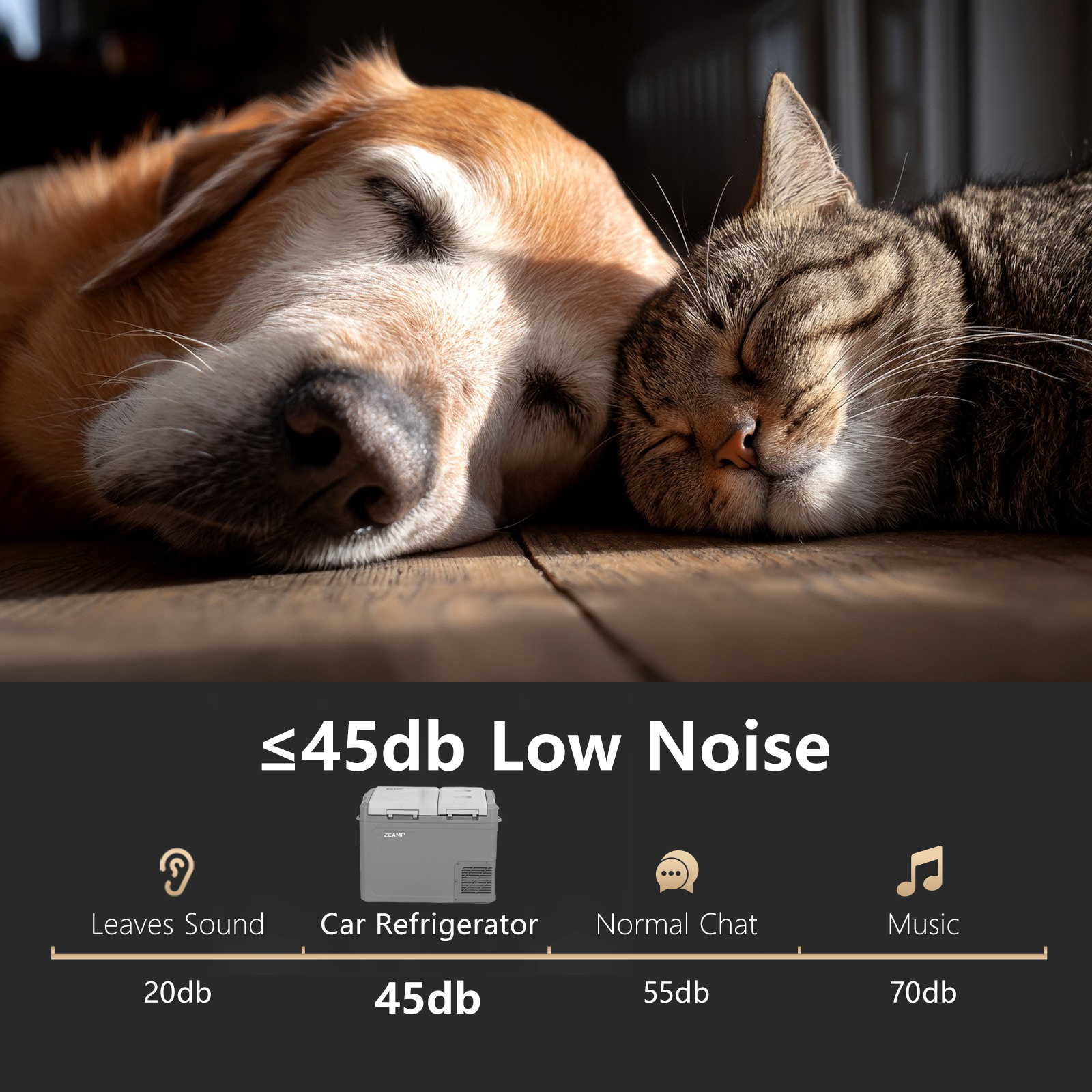 When you use the refrigerator in your car and plug it into a 12V socket, the noise is almost imperceptible!