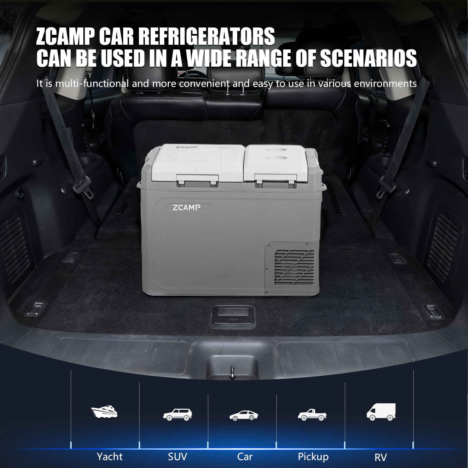 Quiet below 45dB, it comes with an LED display, interior light, cup holders, drain plug and bottle opener, suitable for cars, trucks, RVs, boats and home use.