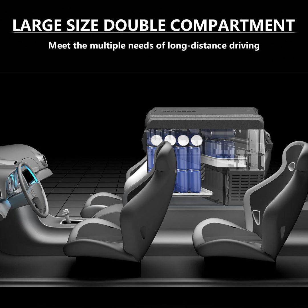 Experience superior cooling performance with the Alpicool NCF55 Car Fridge Freezer. With a wide temperature range of -20°C to 20°C, this 49.4L fridge is perfect for your car, jeep, truck, home, dorm, cottage, garage, RV, boat, or outdoor adventures. Its compressor and multiple power options (12V/24V DC, 100~240V AC) make it a convenient and versatile choice for all your cooling needs. Plus, the APP control feature allows you to easily monitor and adjust the fridge from your phone.